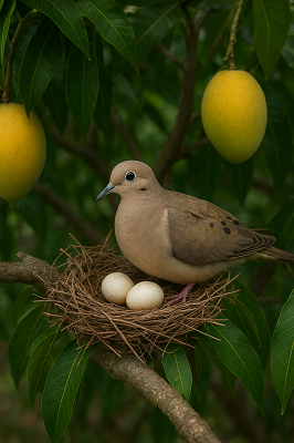 उस आम के पेड़ पर फाख्ता ने अपना घोंसला बनाया हुआ था और उस घोंसले में उसने अंडे दिए थे। मुझे याद है, तब मैं ५-६ साल का था, मैं फाख्ता और उसके अंडों को देर तक देखता रहता । फाख्ता अपने अंडों की बहुत देखभाल कर रहे थे । एक दिन मैंने देखा कि एक कौआ बार-बार अण्डों की तरफ झपटता और फाख्ता उसको भगा देती, मेरे लिए ये हैरान करने वाली बात थी—मुझे लगा कि वह उनको खाना चाहता है ।